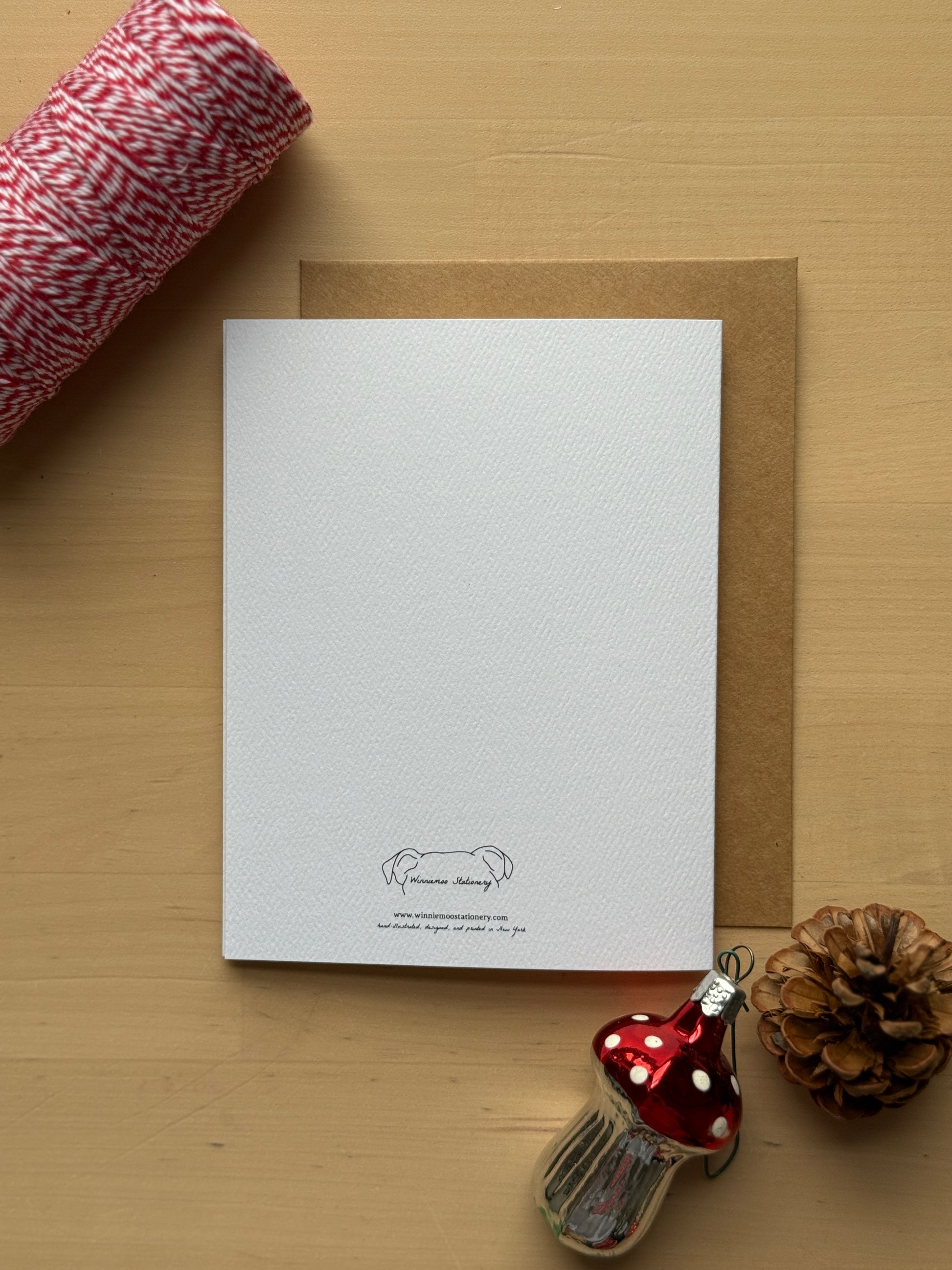 This cozy pine card brings warm holiday vibes. Available as a single card, set of 4, or set of 6.